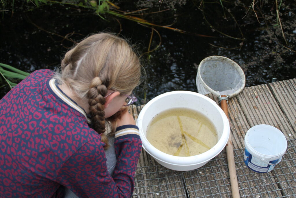 Gewapend met schepnetjes, loepjes en zoekkaarten ontdek je de vijvers in de landschapstuin. Vanaf het bruggetje dat over de vijver loopt, worden allerlei diertjes opgevist. Samen nemen we je vondsten onder de loep en met behulp van een speciale zoek-kaart voor waterdieren kom je te weten welke diertjes er allemaal onder water leven!